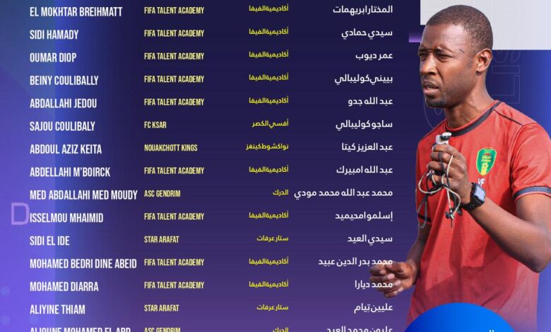 وتضم القائمة نخبة من اللاعبين الشباب الذين تم اختيارهم لتمثيل موريتانيا في هذا الحدث الرياضي الإقليمي الهام، بهدف التأهل إلى المنافسات القارية.
